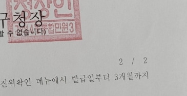 두장일경우 왼쪽의 발행번호와 2/2 숫자가 중요합니다