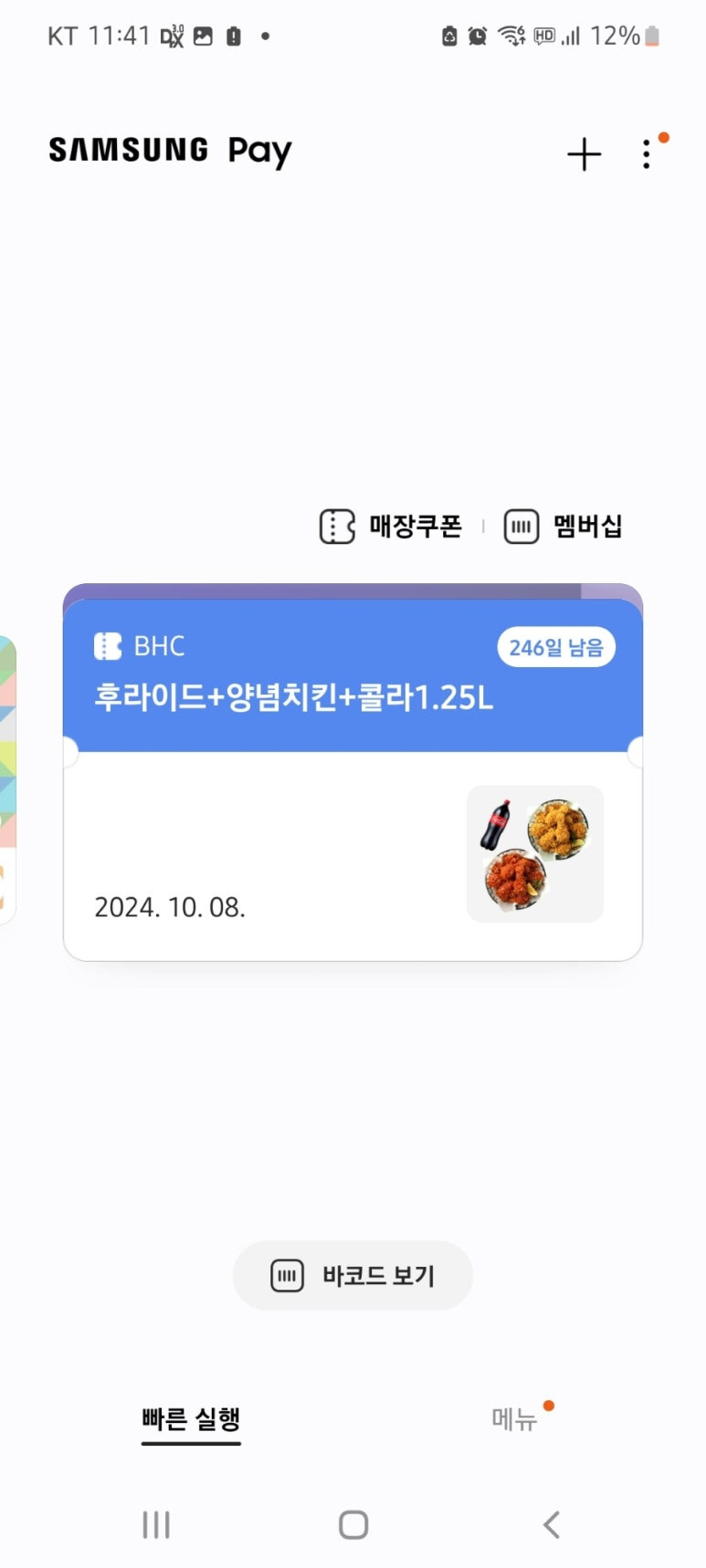삼성페이에 등록된카드처럼 쿠폰이 보이게 됩니다.