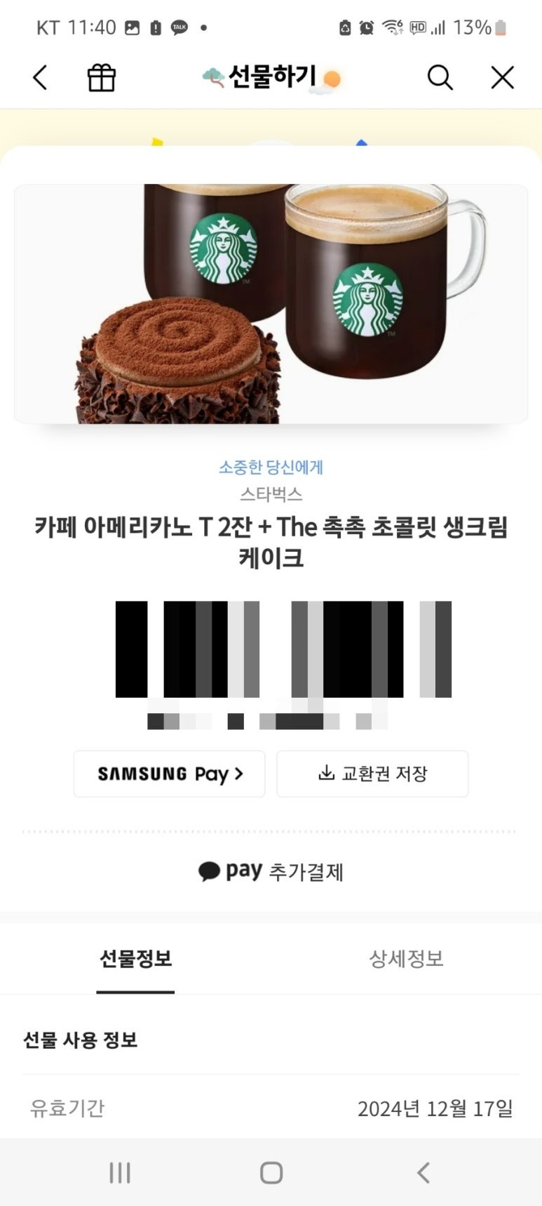카톡 선물하기로 들어가 받은선물함에서 받은선물을 클릭하면.