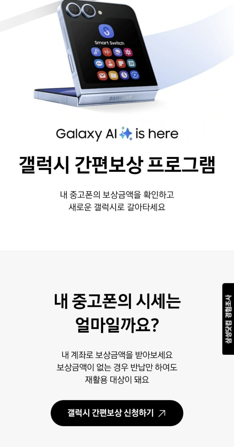 그래서 삼성에서는 삼성 자체적으로 중고폰을 매입하는 중고보상 프로그램을 시작하게 되었습니다.