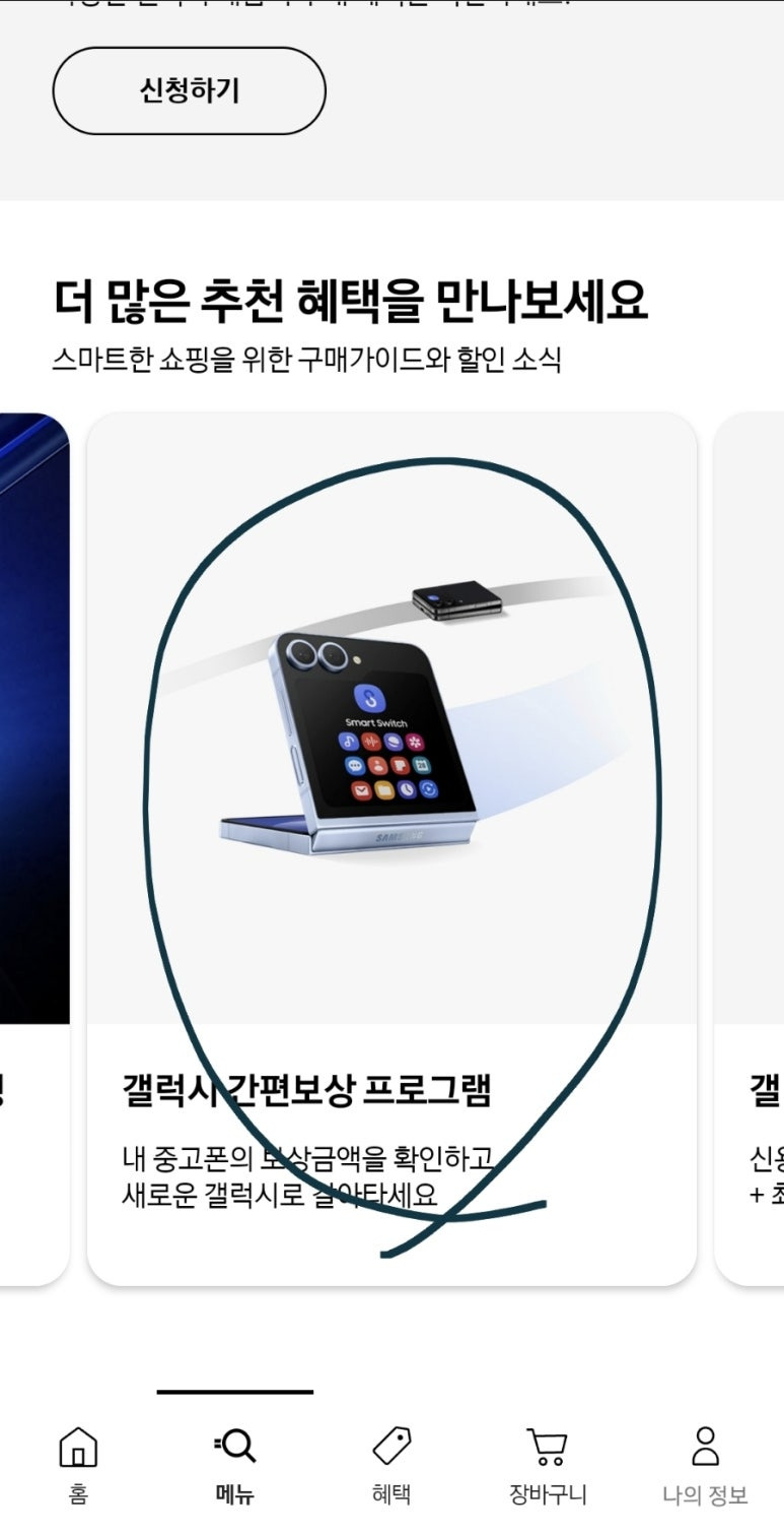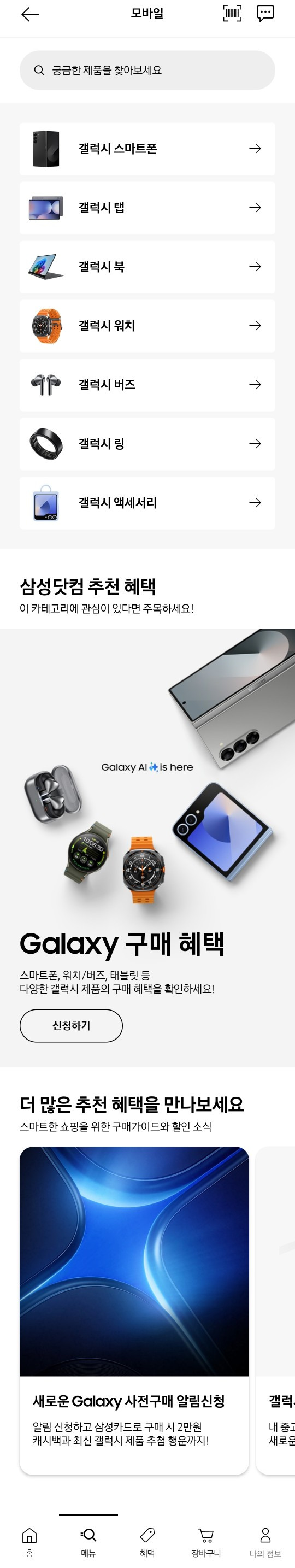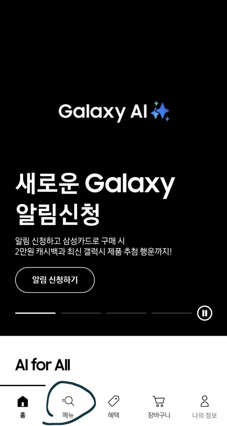 삼성닷컴 앱에서 메뉴 클릭