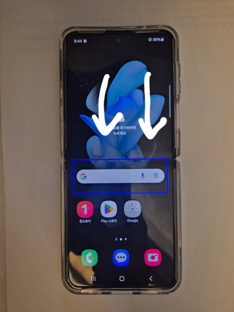 - 홈 화면에서 두손가락으로 화면을 아래로 내리면 상단 퀵 실행바가 내려옵니다