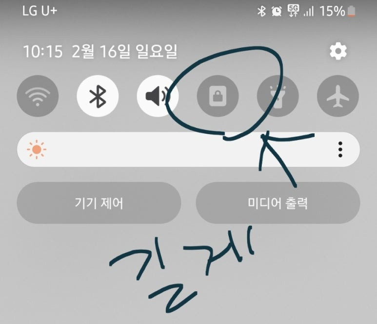 이때 자동회전 기능을 선택적으로 돌아가지 않게 할수 있는 꿀팁이 있습니다.
