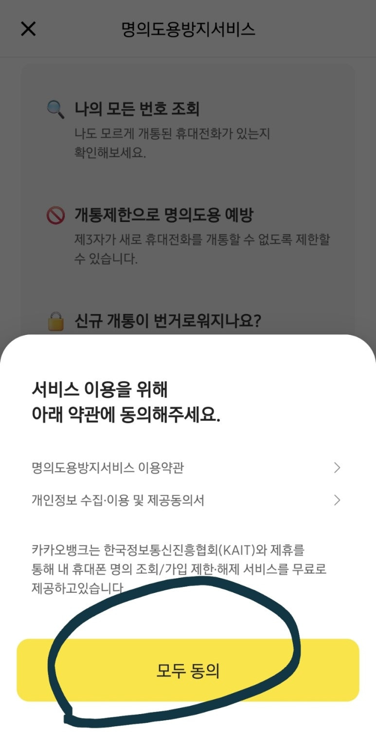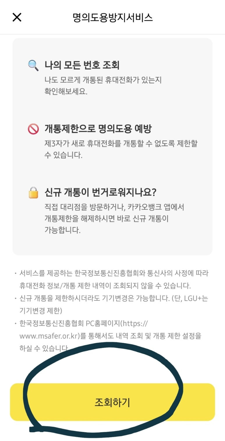 또는 나도 모르게 내 명의로 휴대폰 가입이 될지 걱정되신다면 카카오뱅크를 이용해 개통제한을 걸어놓으시는건 어떨까요?