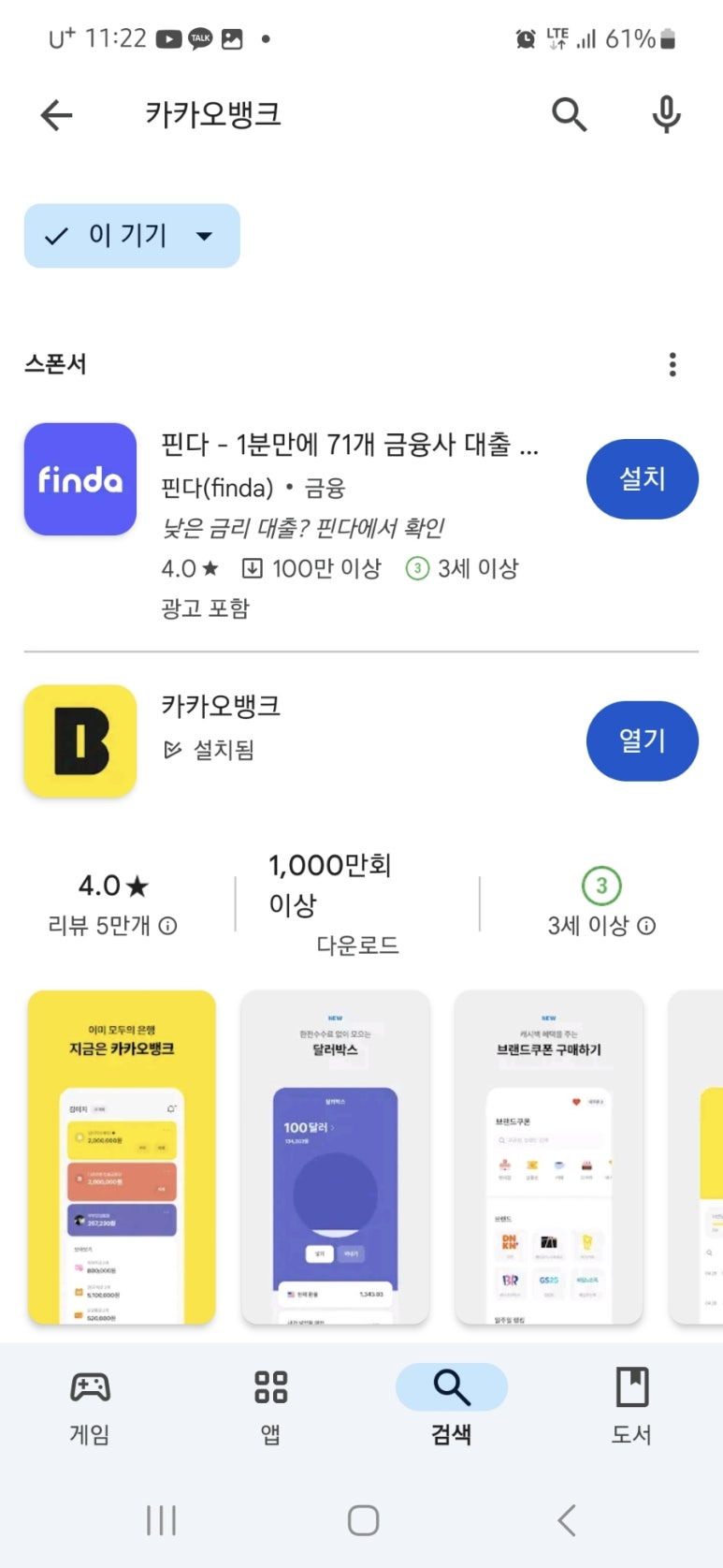 1.플레이스토어에서 카카오뱅크 설치